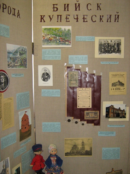 В них прослеживается жизнь города с момента его зарождения до настоящего времени и способствует раскрытию основной идеи музея – показать место, роль небольшого сибирского городка, основанного по Указу Петра I, в судьбе России. Неслучайно экспозиция начинается с истории коренного населения Алтая, чтобы показать судьбу алтайцев до вхождения в состав России и причину их заинтересованности в этом процессе, а также обозначить роль Бийской крепости в этом событии. Следующие разделы экспозиции раскрывают основные этапы становления и развития города вплоть до сегодняшнего дня.